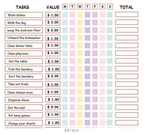 • Fully customizable layout, text, and sections for personalized allowance tracking
