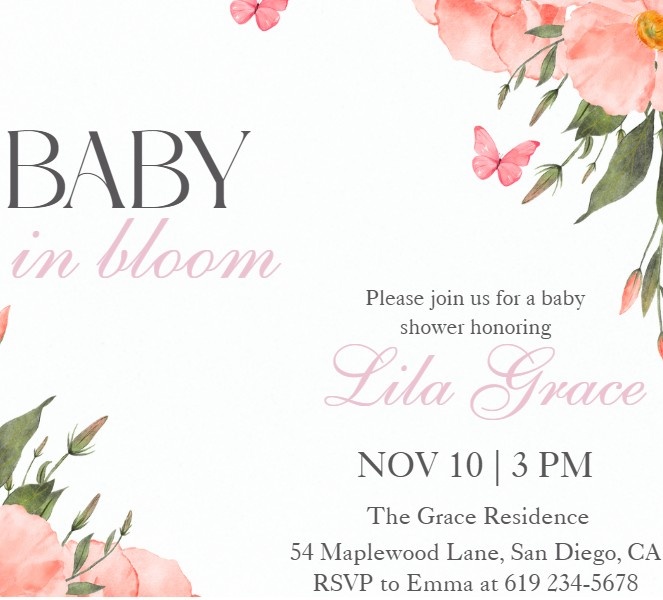 Baby in Bloom Invitation Template – Editable Floral Baby Shower Design