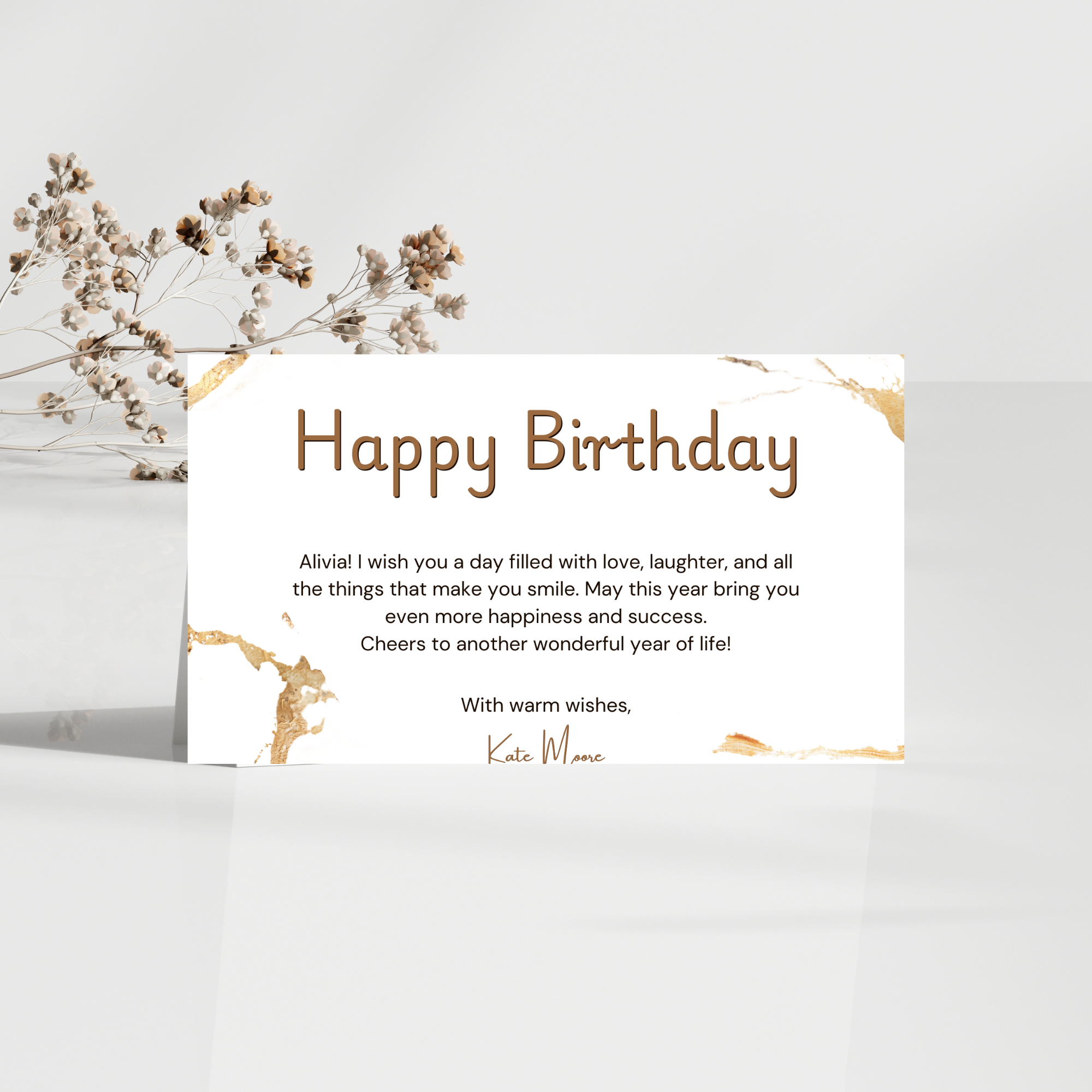 This brown and gold watercolor birthday greeting card is designed for those who prefer a refined and elegant style.