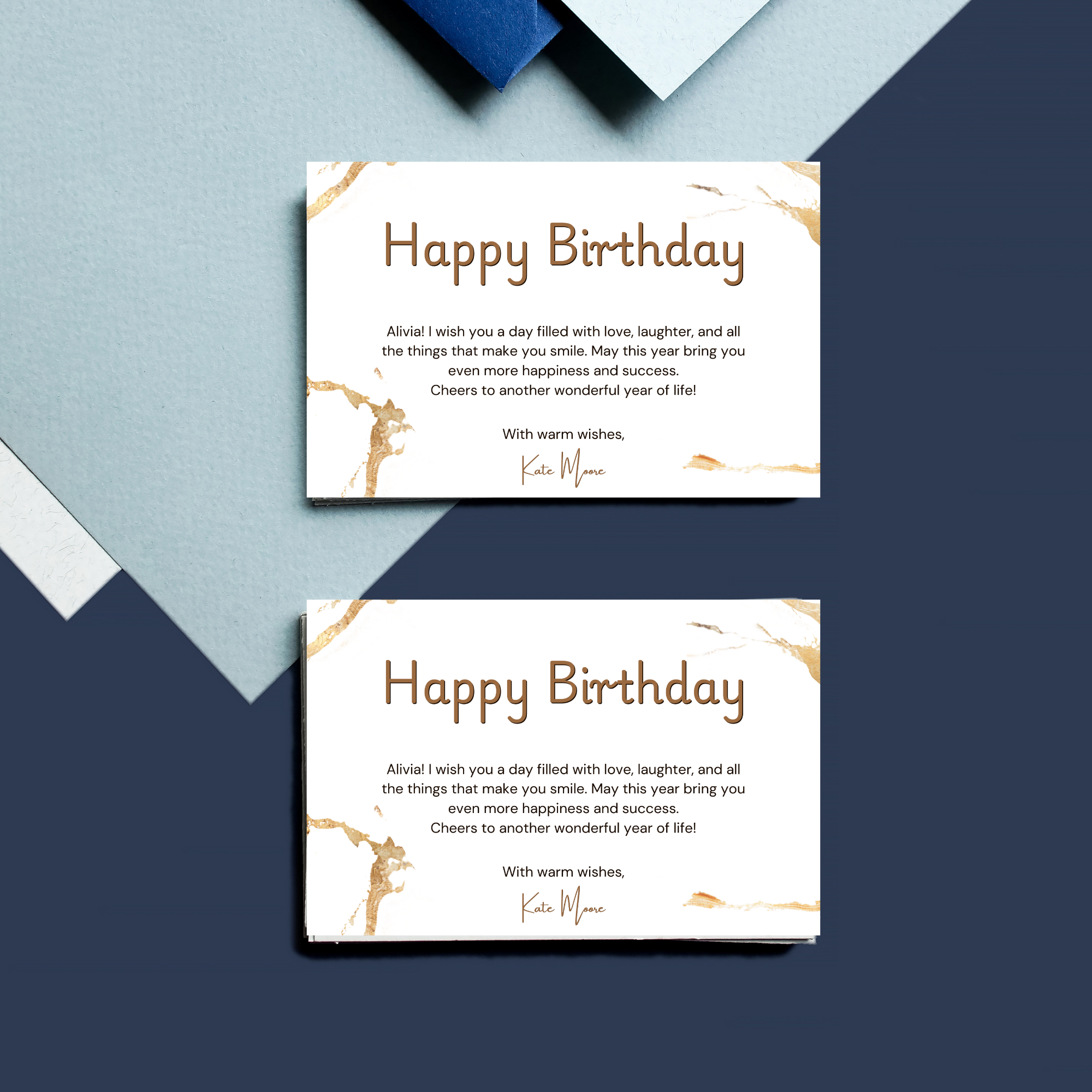 The soft watercolor texture combined with subtle gold accents gives the card a timeless and premium feel.