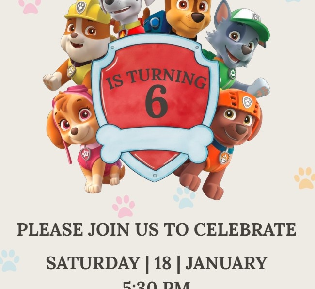 Make your child’s birthday adventure-ready with this playful Editable Paw-ty Invitation Template. Designed with bright colors, adorable paw prints, and a cheerful layout, this invitation is perfect for little fans of pups, teamwork, and fun-filled celebrations.