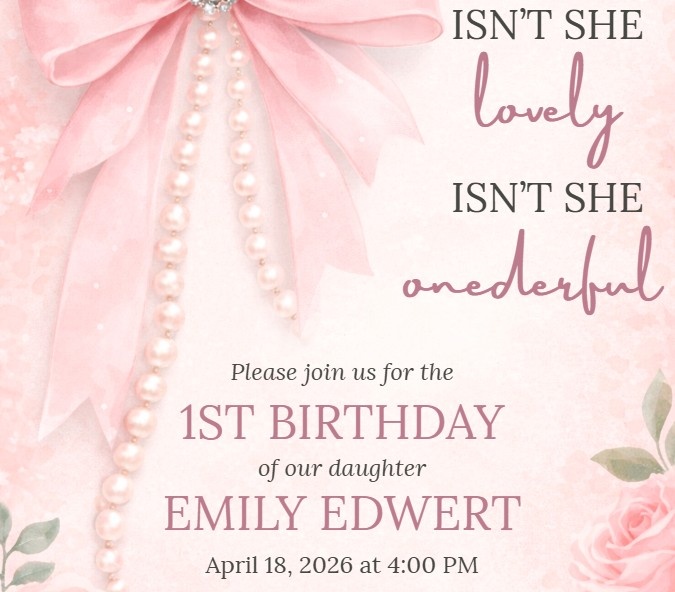 The Editable Pink Bow 1st Birthday Invitation combines softness, elegance, and ease of use. Its beautiful design and simple editing make it the perfect choice to celebrate your baby girl’s first birthday in a memorable and stylish way.