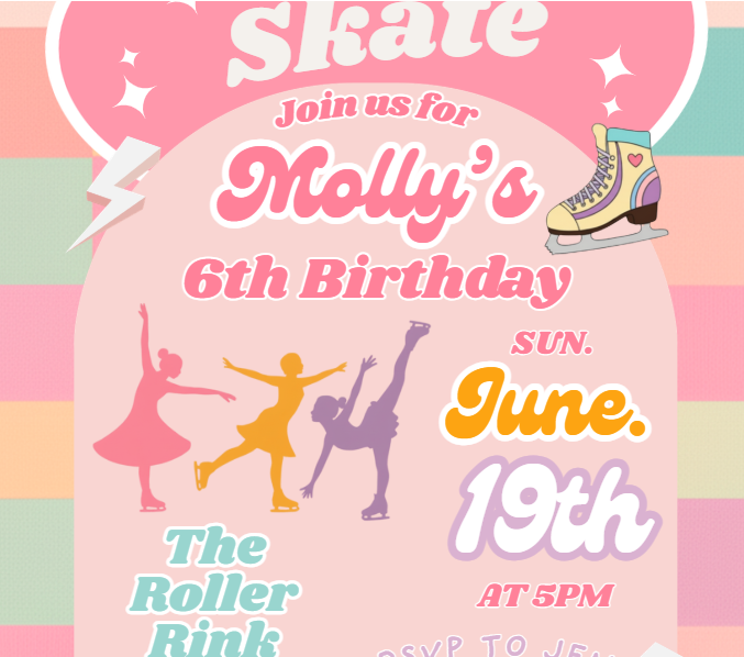 The clean and cheerful design makes it ideal for kids, teens, or anyone who loves ice skating and winter vibes. It instantly creates excitement and gives guests a clear preview of a joyful, active, and memorable birthday party.