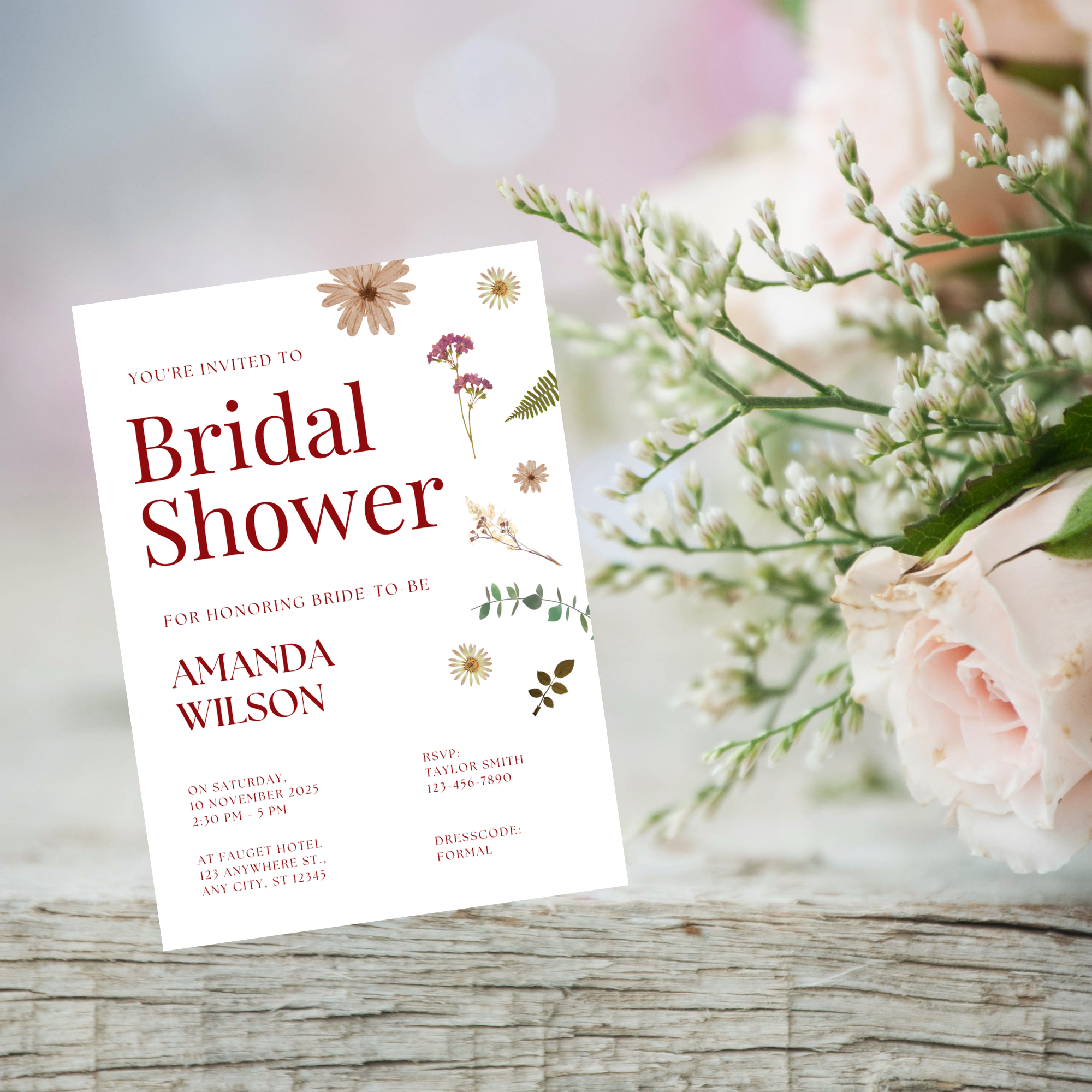 This Red Vintage Floral Bridal Shower Invitation features beautiful vintage floral designs in rich red tones, creating a warm and sophisticated feel.