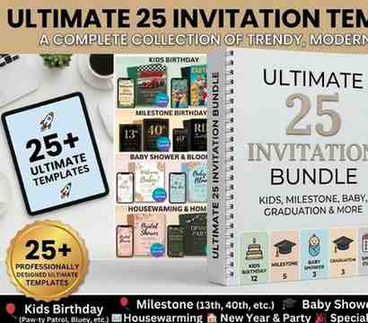 Take your party planning to the next level with this Ultimate 25 Invitation Templates Bundle — a complete collection of trendy, modern, and best-selling invitation designs all in one powerful value pack.