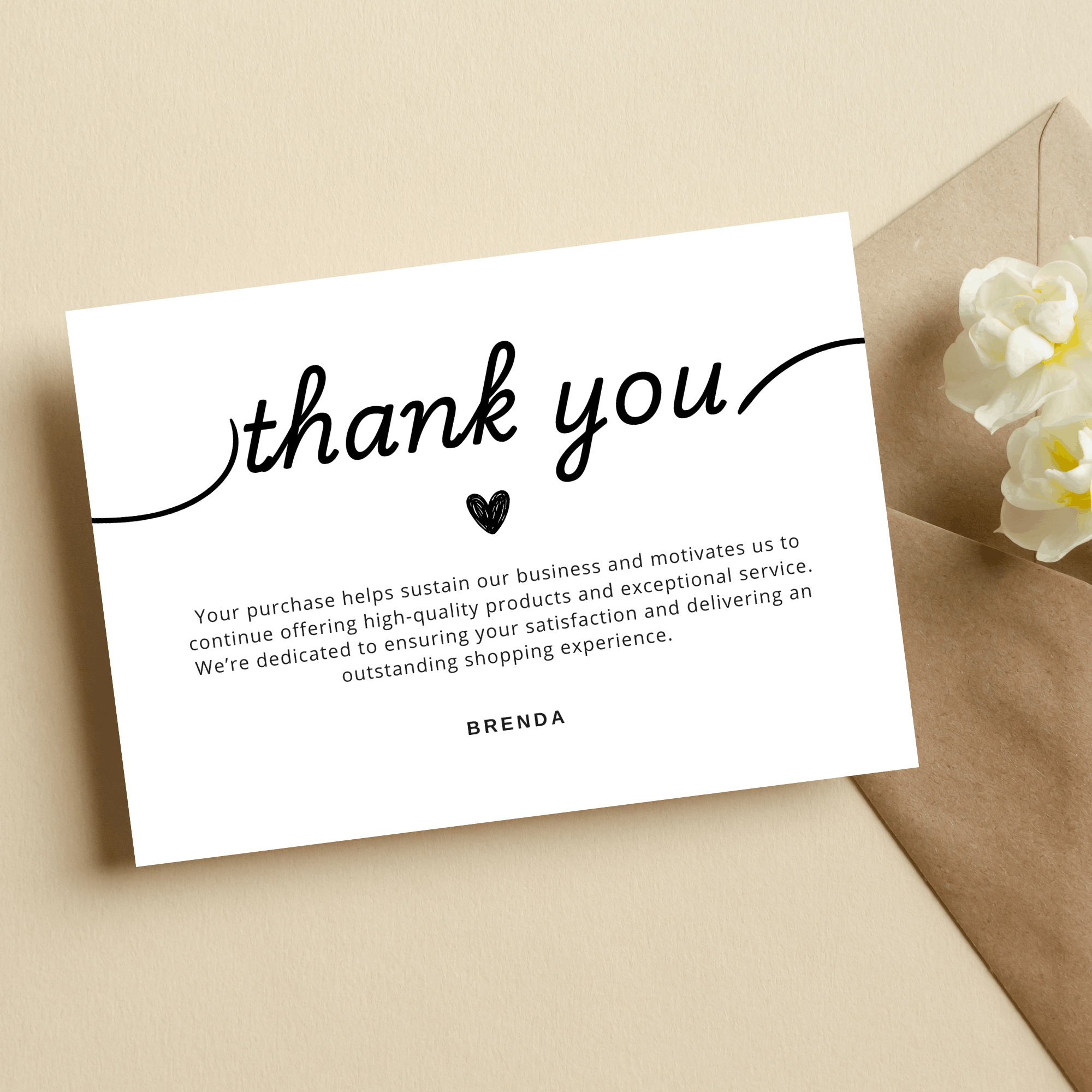 This White and Black Minimalist Simple Thank You Card features a sleek, modern design with a clean layout.